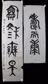 著名作家、史诗研究院 陶阳 戊子年(2008)作 书法作品《小篆》《甲骨文》两幅(纸本软片,尺寸为:大:138*35cm、小:138*25cm,钤印:陶阳)HXTX382297