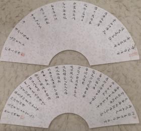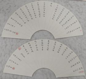 孙鹏,男,1988年生于山东临清。2010年毕业于南京艺术学院美术学院书法系。现为陕西师范大学美术学院书法方向研究生;江苏省书法家协会会员。书法(扇面)两幅2x17x51纸本软片。保真包退。