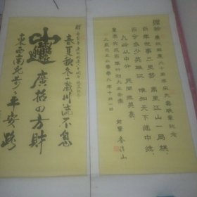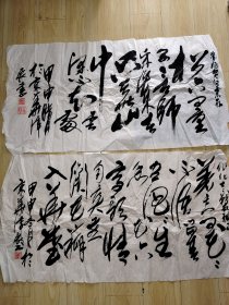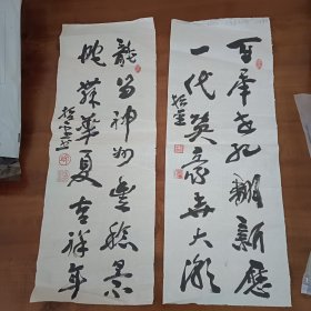 【书家墨宝.编号XC008】史诗书法作品.行草书西晋陆机文赋句“心游万仞,精务八极”(正文八字).竖幅两条,每条长48厘米×宽178厘米宣纸本(两幅合售)
