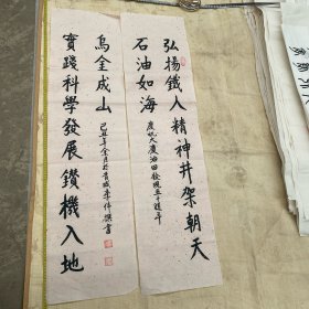 【百岁书家.编号K28】李伟书法作品.楷书庆祝大庆油田发现五十周年贺联(正文28字).竖幅长138厘米×宽36厘米宣纸本.两幅合售(附赠书家相关简介书法图集一册)