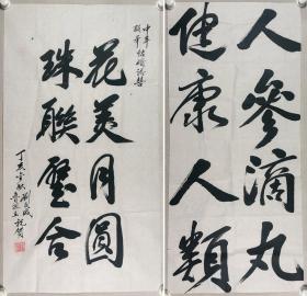 曾任中共河南省委书记、贵州省委书记 刘正威 丁亥年(2007)书法作品《花美月圆,珠联璧合》等两幅(纸本软片,画心约4.7、4.1平尺,钤印:刘正威印)HXTX342693
