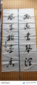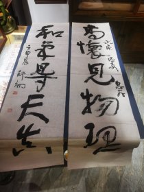 著名书法家 四川省书法家协会副主席 成都市书法家协会主席 舒炯 早期书法对联精品_《高怀见物理 和气导天真 》 (136x35cmx2)永久保真!