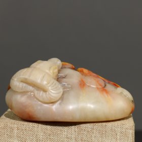 珍品田黄石印章精雕·三阳开泰·老闲章 透料麦芽黄精雕瑞兽呈祥 石质温润通透 萝卜纹清晰细腻。白石 作 净高14.5厘米长5厘米厚5厘米净重700克