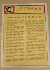 中国共产党第八届扩大的第十二次中央委员会全会公报 宣传画完整一张:(珍贵史料:河北人民美术出版社,1967年10月,全开本,尺寸约为:1100*770,7.6品)2