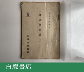 稀见版本,极具收藏价值:1929年印刷日语版《共产党宣言》、评注、附录:恩格斯《共产主义原理》、《共产主义者同盟的规约》,封面有马克思、恩格斯头像。