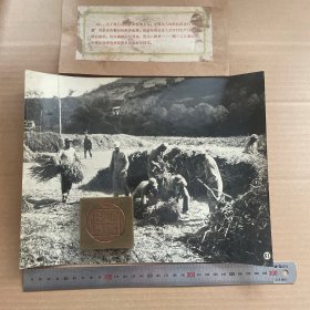 【银盐老照片】抗日战争时期,八路军三五九旅的指战员在拉犁中耕【军史 历史 党史 革命史】 尺寸:20厘米*15厘米