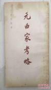 孙楷第(1898-1986)著, 在遍阅元人著述、大量占有第一手资料的基础上, 经过自己的反复排比、筛选、考辨而成的,故全书能够多见前人所未见,发前人所未发,具有极高的文献价值。它揭开了许多元曲家的身世、家世之谜,澄清了元曲家研究上多年悬而未决的问题,元曲家考略:上海古籍出版社1981年版10-3(三)
