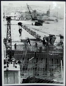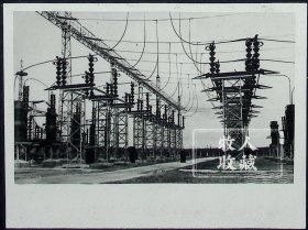 苏联古比雪夫水电站建筑工程将在苏联第六个五年计划期间完工。古比雪夫水电站的发电能力将为210万千瓦。图为古比雪夫水电站的变电设备。(1张,1956年拍摄)原版老照片 保真保老