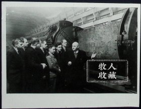 列宁格勒斯大林冶金工厂是苏联最大的制管中心,工厂内有着最新式的生产设备。图为该厂的工人和工程师正在共同研究解决复杂的生产技术问题。(1张,1954年拍摄)原版老照片 保真保老