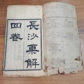 著名医学宗师“黄药师”黄元御著作,光绪乙巳年(1905)经元书室木刻本《长沙药解四卷》一.二卷全一册,详情见图,在杂书箱