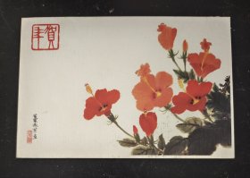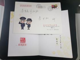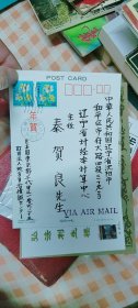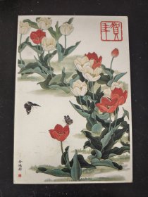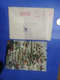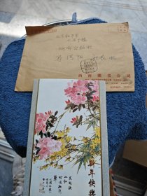 山西省五台山善财洞住持,能修法师,信札(亲笔手书贺卡,手书实寄封)(0.40元邮资已付公章值得收藏)(山西太原93年1月11日为倒写公章值得收藏,仔细看图)(贺卡为著名画家王雪涛画作《岁朝图》)