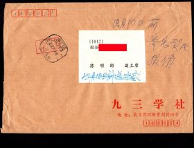 [C4-23]邮资已付封/北京蟠龙公司马旭1993.12.03寄北京首都博物馆馆长崔学谙信函贺卡/销北京413(所)八角形邮资已付邮戳,背盖北京7(支)12.04到达邮戳。