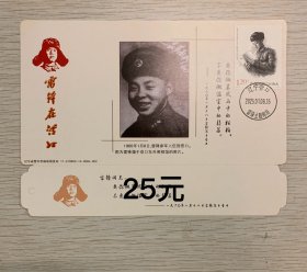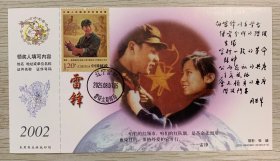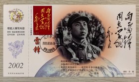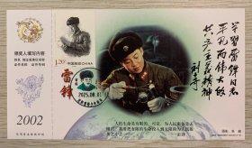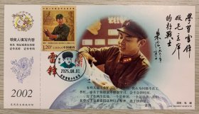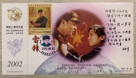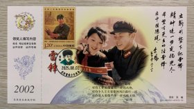 向【雷锋】同志学习题词50周年金卡极限、营口原地3月5日学雷锋纪念日雷锋主题邮局日戳;票前片(雷锋肖像);钢戳清晰完整-2002生肖马年60分中国邮政贺年有奖邮资明信片企业金卡拜年卡贺卡极限片