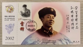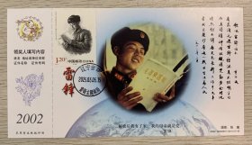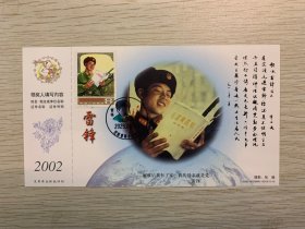 挂像英模【雷锋】金卡极限、沈阳雷锋少年邮局首日套色文化日戳(仅用一天就回收);票前片;彩戳清晰-2002生肖马年60分中国邮政贺年有奖邮资明信片企业金卡拜年卡贺卡极限片
