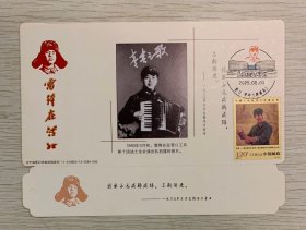 挂像英模【雷锋】金卡极限、沈阳雷锋少年邮局首日套色文化日戳(仅用一天就回收);票前片(雷锋手风琴);彩戳清晰-2011生肖兔年80分中国邮政贺年有奖邮资明信片企业金卡拜年卡贺卡极限片