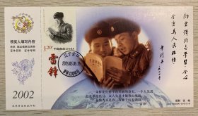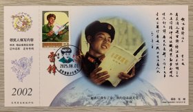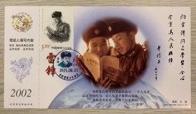 挂像英模【雷锋】金卡极限、沈阳雷锋少年邮局套色文化日戳(仅用一天就回收);首日票前片(雷锋辅导学生);彩戳清晰完整-2002生肖马年60分中国邮政贺年有奖邮资明信片企业金卡拜年卡贺卡极限片