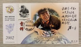 向【雷锋】同志学习题词50周年金卡极限、沈阳雷锋少年邮局套色文化日戳启用首日(仅用一天就回收);票前片;彩戳清晰完整-2002生肖马年60分中国邮政贺年有奖邮资明信片企业金卡拜年卡贺卡极限片
