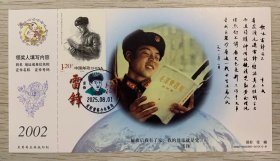 向【雷锋】同志学习题词60周年金卡极限、营口原地首日雷锋主题邮局日戳;票前片同图;钢戳清晰完整-2002生肖马年60分中国邮政贺年有奖邮资明信片企业金卡拜年卡贺卡极限片