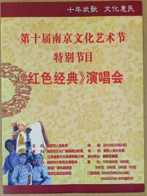 第十届南京文化艺术节特别节目 《红色经典》演唱会 演员: 杨春霞 冯志晓 魏积军 黄炳强 毕杨 李博 唐禾香 甄建华 马翔飞 吕慧敏等 演出说明书 节目单