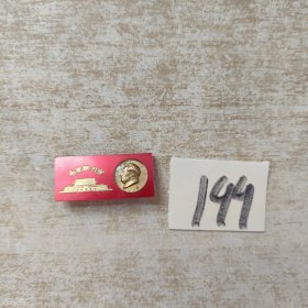 B17,异形军舰毛主席像章,背,伟大统帅毛主席视察425厂,接见军代表十周年,1958一1968,海军装备战
