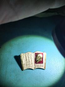 全网未见有题字毛主席像章,很小,造型独特,主席像和某人题各占一半,很少见。异形章,书本打开形。2.8*1.8厘米。背面有上海字样。见图