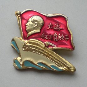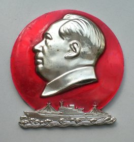 异形毛主席像章 ( 语录 章 沈安)金色头像 下部 军舰 红底 背文 大海航行靠舵手干革命靠毛泽东思想 沈阳市革命委员会 沈安敬制 直径 3*3.5cm 照片若有阴影 乃分局是拍照光线所致 稀少