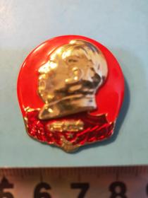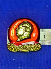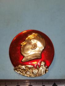 异形毛主席像章 ( 纪念章 )金色头像 下部 芒果 红底 背文 毛主席把珍贵礼物芒果送给工人阶级和贫下中农 忠 直径 3*3.5cm 照片若有阴影 乃分局是拍照光线所致 稀少