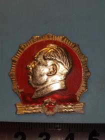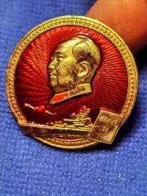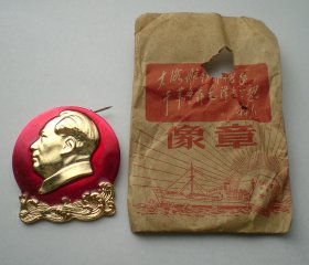 异形毛主席像章 ( 好战士章 南京军区) 金色头像 大海边 海防战士 背文 做毛主席的化妆师 南京军区 1968 直径 4*4.2cm 照片若有阴影 乃分局是拍照光线所致 极其稀少