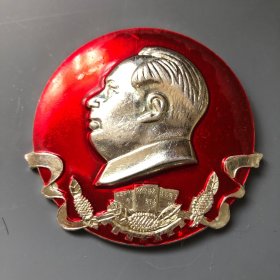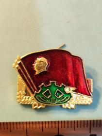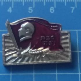 异形毛主席像章 ( 造反派 章 )红旗内金色头像 齿轮麦穗 直径2*2.7cm 背文 兵团战士日夜想念毛主席 1966.12.7——1967.12.7 照片若有阴影 乃是拍照光线所致 极其稀少