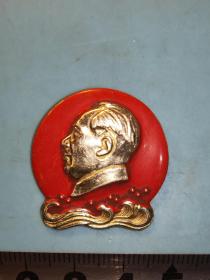 异形毛主席像章 (万岁 忠字 章 内蒙 )金色头像 下部 海浪 背文 毛主席万岁 忠 内蒙 直径 3.2*3.2cm 照片若有阴影 乃是拍照光线所致 稀少