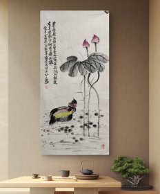 陶博吾(1900年-1996年 鸳鸯荷花 百年好合 138+68cm画心 4尺22507152 原名文,字博吾,别署白湖散人,号国顺,别署简朴斋、白湖散人等。江西省九江市彭泽县人