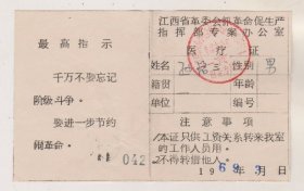 文*69年江西省革委会指挥部专案办公室医疗证