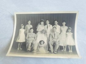 解放初结婚新人双方家人合影老照片