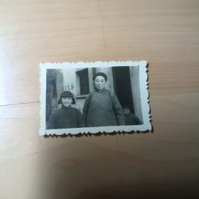 老照片–解放初期三人在房前留影(一个老奶奶,两个小孩)