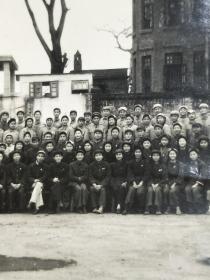 老照片。全国解放初期,大批军人复员。49军文工团女战士即将复员时留影。