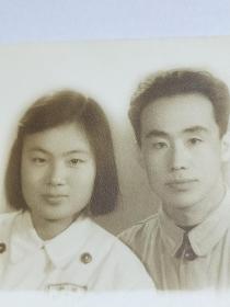 老照片。解放初期,两位战友结成伉俪。