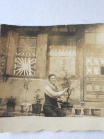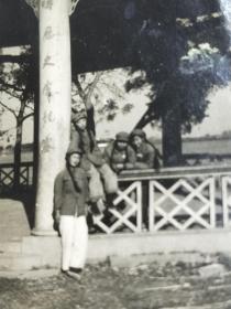 老照片。解放初期,女战士在村头留影照相。