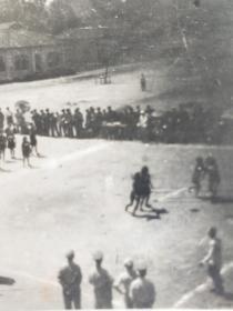 老照片。解放初期,军营内解放军女兵组织篮球赛。