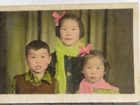 1960年代《老照片》兄妹三仨合影留念~哥戴像章(妹妹辨子很有特色)