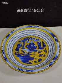 18_旧藏 元代波斯文黄釉青花故事纹赏盘,器型规整,釉色肥美,品相完整