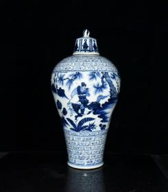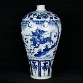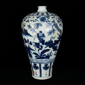 元波斯文青花萧何追韩信人物故事纹梅瓶 古玩古董老瓷器收藏 49.7x26