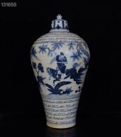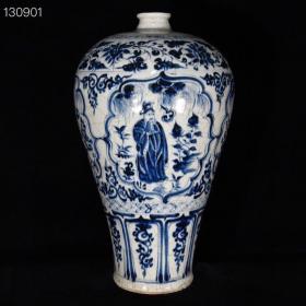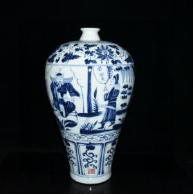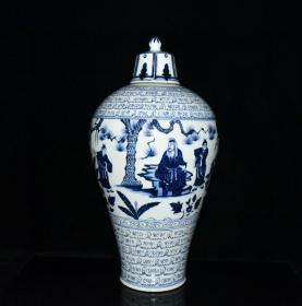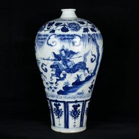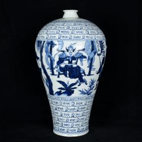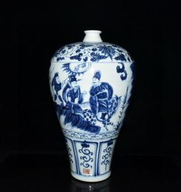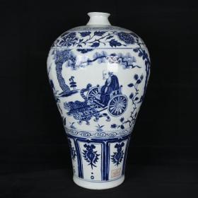 元波斯文青花三顾茅庐人物故事纹梅瓶 古玩古董老瓷器收藏 49.5x26