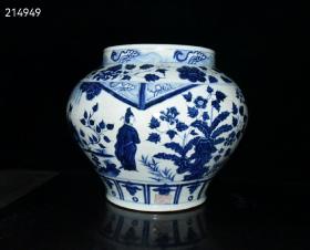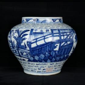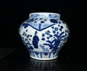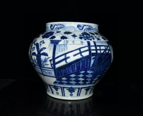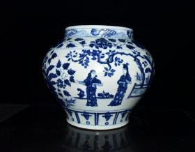 元波斯文青花锦香亭人物故事纹罐 古玩古董老瓷器收藏 29x35
