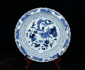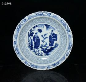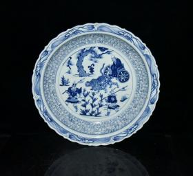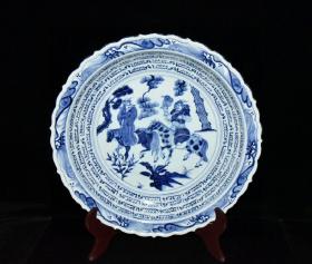 元波斯文青花昭君出塞人物故事盘 古玩古董老瓷器收藏 7.3x44