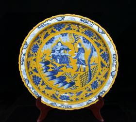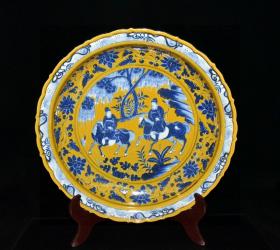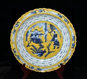 元波斯文黄釉青花人物故事纹盘 7.8✘44.5