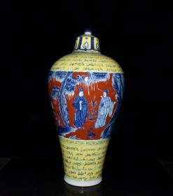 元波斯文红黄釉青花周亚夫人物故事纹梅瓶 古玩古董老瓷器收藏 48.5x25