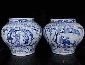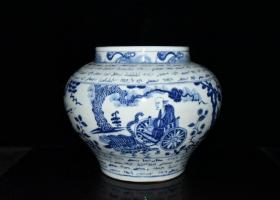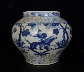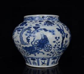 元青花波斯文鬼谷下山人物故事纹罐 高27 直径35