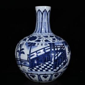 元波斯文青花锦香亭人物故事纹天球瓶 41×29