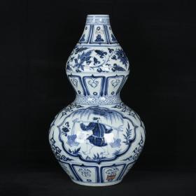 元青花波斯文款开窗人物故事纹葫芦瓶 高47 直径29