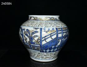 元波斯文青花锦香亭人物故事罐 29x35